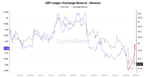 El balance de XRP en Binance aumentó a 2.730 millones de tokens, frente a 2.550 millones a mediados de mes (+7%).