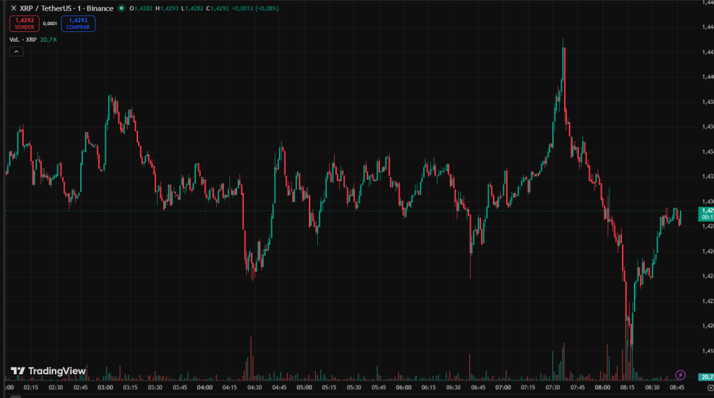 XRP mantiene fortaleza relativa y continúa consolidando sobre la zona de $1.40, nivel que muchos traders consideran clave para activar una ruptura alcista de corto plazo.