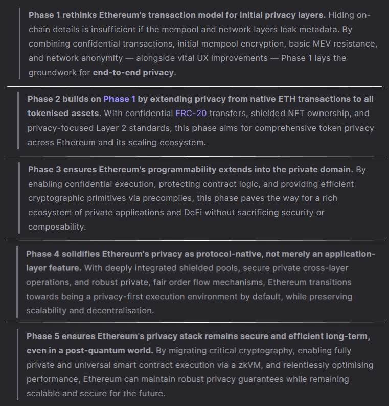 Entre los elementos destacados de la hoja de ruta de privacidad en Ethereum, se encuentran: