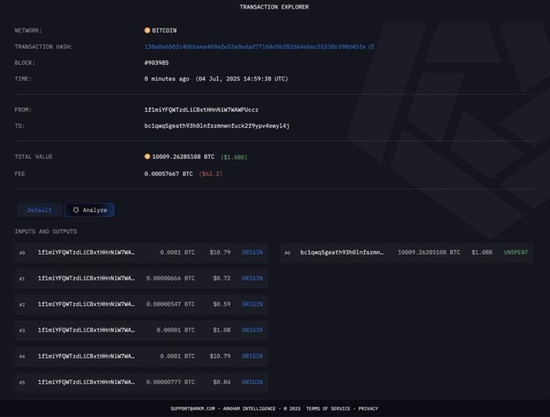 Un Bitcoin whale anónimo ha sacudido el mercado al realizar la mayor transferencia diaria de BTC registrada hasta la fecha, moviendo cerca de 130,000 bitcoins —valorados en más de $8 mil millones— en una serie de operaciones que dejaron desconcertada a la comunidad cripto.